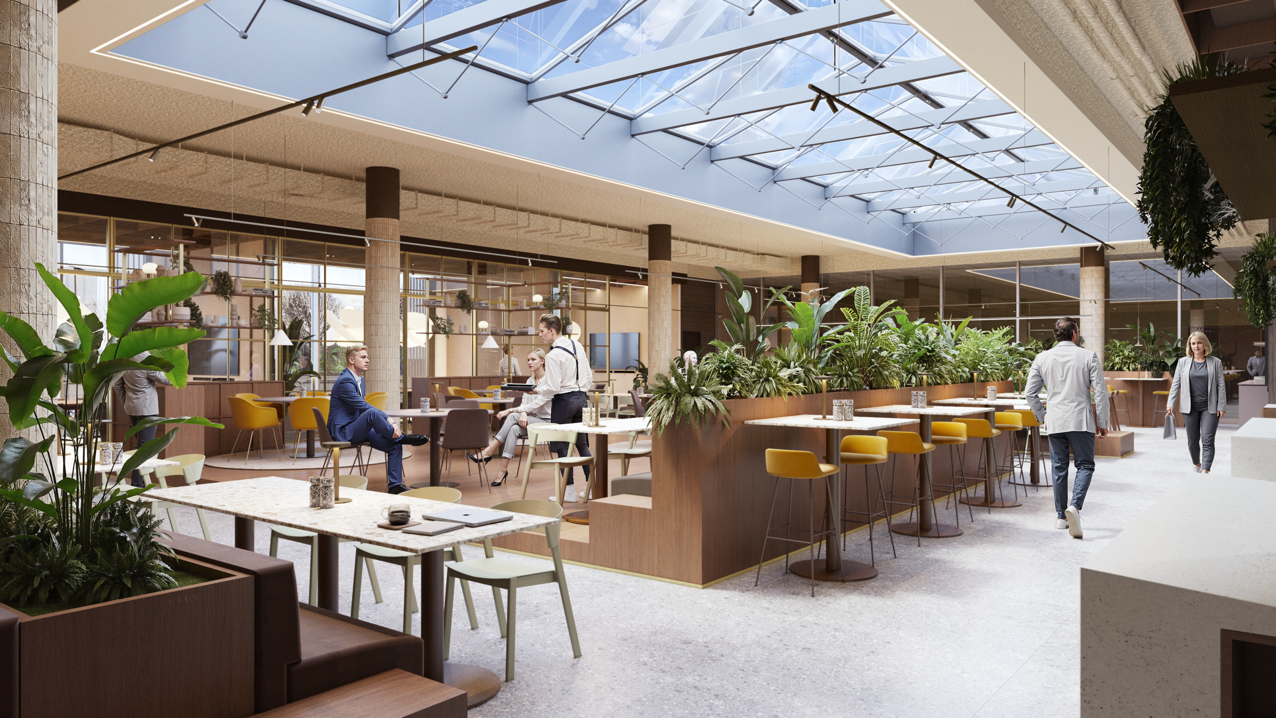 The brasserie is a place people enjoy returning to. Not only for lunch, but also for informal meetings and shared moments. Different seating arrangements support a variety of uses throughout the day, from short breaks to longer conversations. Integrated into the ground floor, the brasserie adds warmth and energy to the building’s daily rhythm.
